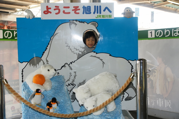 旭山動物園在車站裡設立的看板。