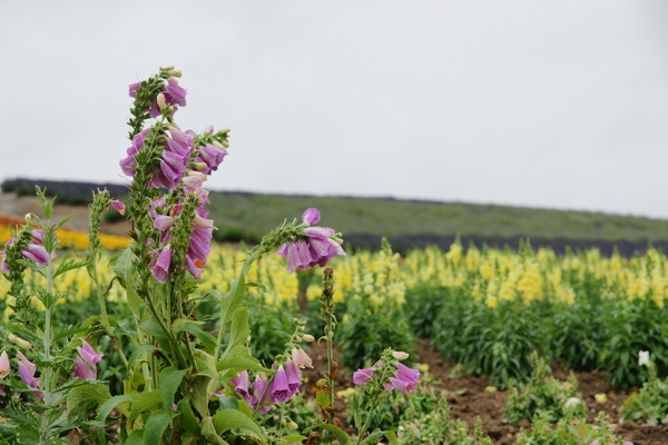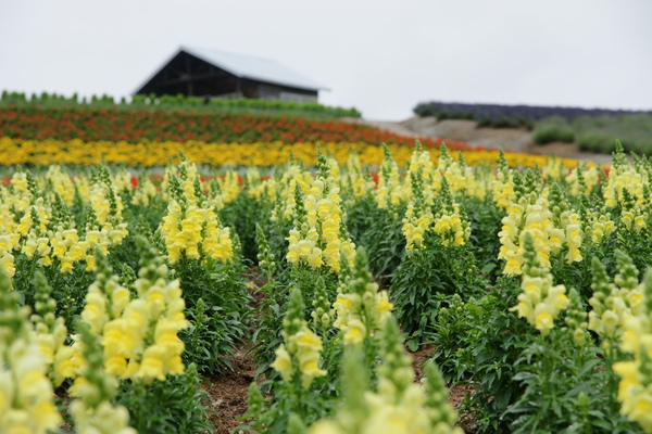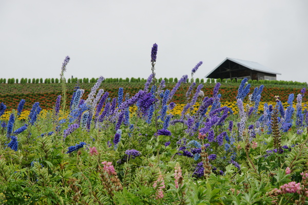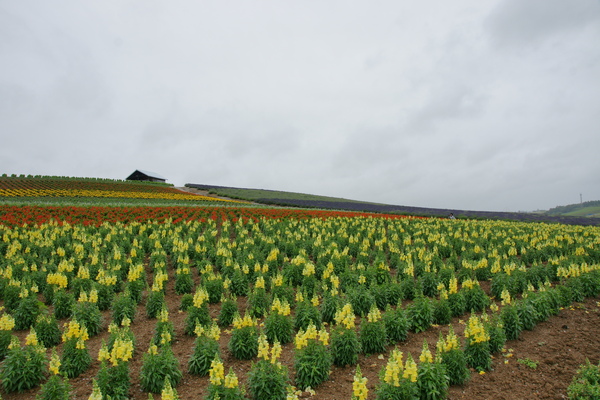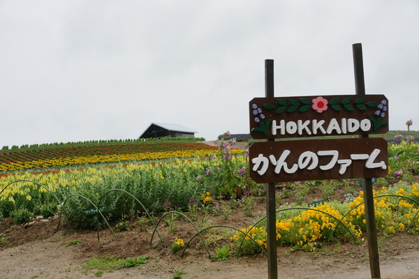 離開美瑛返回富良野的路上,在美馬牛峠經過了一片不小的花園-かんのファ-ム。色彩分明的花朵鋪滿了整個山頭,如果是在晴天之下應該會非常的美吧!