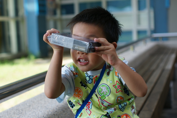 李小弟馬上吵著要試戴。看起來也頗帥氣!