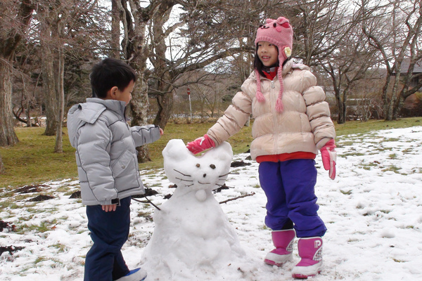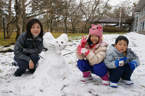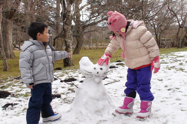 在全家的通力合作之下,完成了這個比第一天堆的雪人還要更大型的作品-雪貓 (Kitty)?