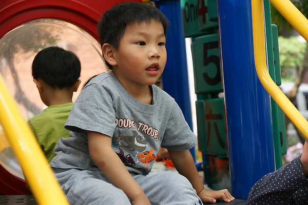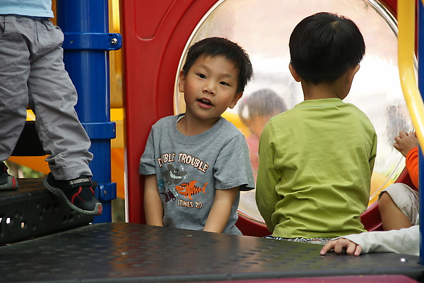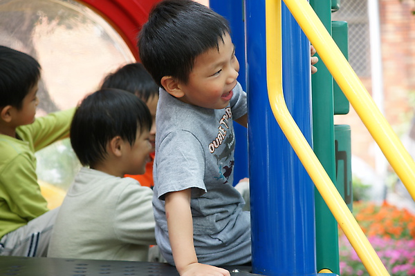 剛到的時候因為其他的小朋友已經準備開始玩了,所以李小弟迅速的 (等不及) 和我們說了掰掰之後就衝上去爬溜滑梯了~