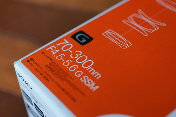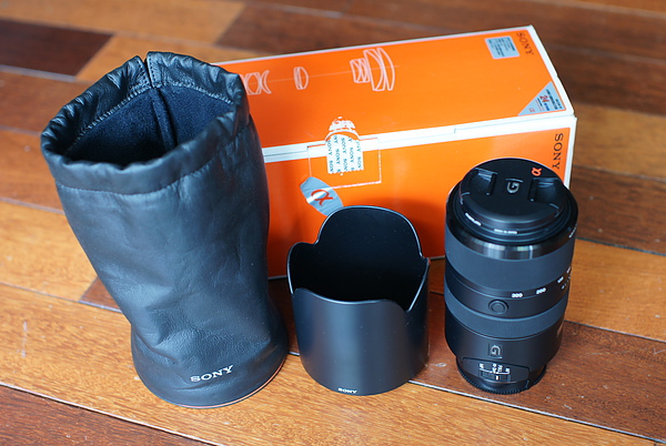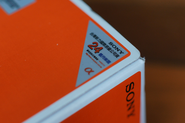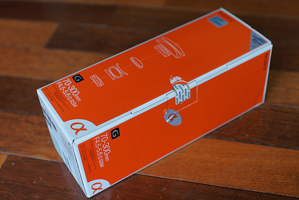Sony 鏡頭一貫耀眼的橘色盒裝。